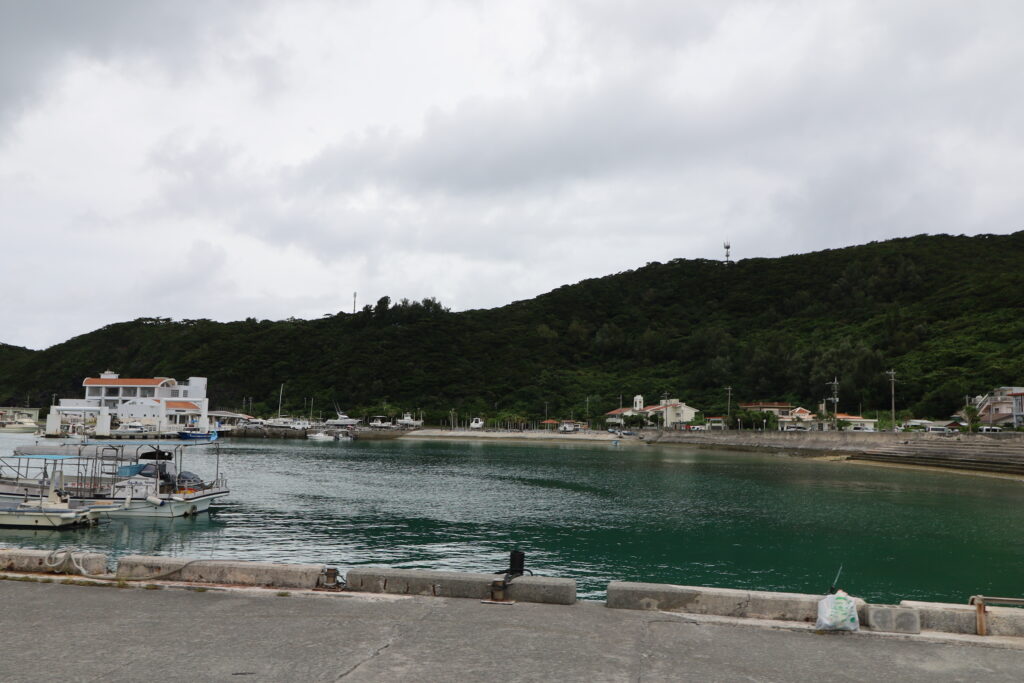 17時着のクイーン座間味を写真に撮ろうとクジラ公園まで。