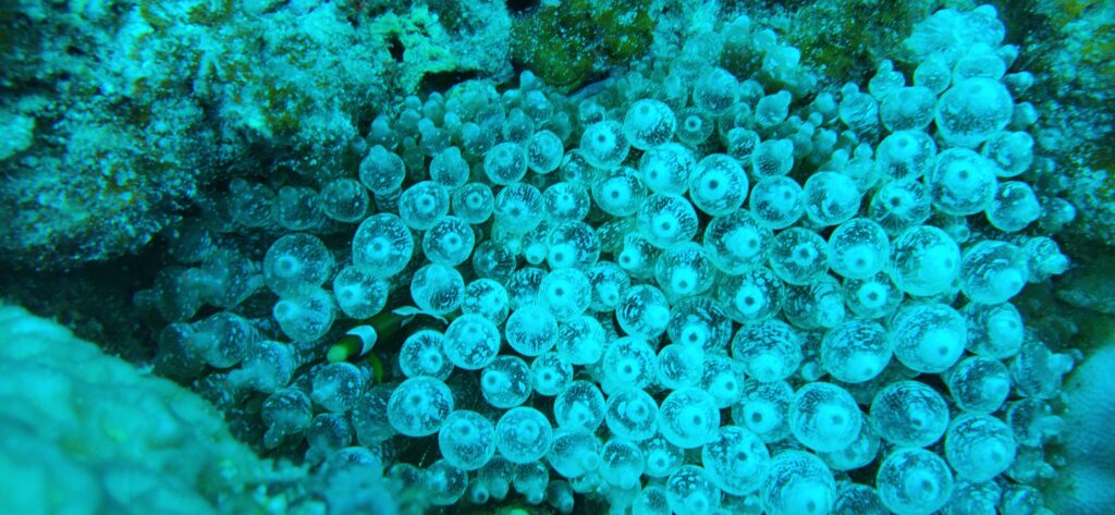 このポイントはクマノミが多く、いろいろなイソギンチャクに。