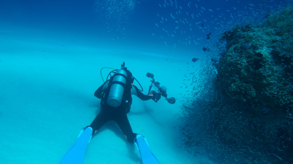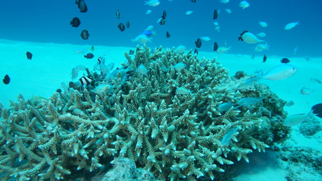 ゆっくり潜れたので写真撮りまくり。魚影が極めて濃く、タカサゴとかキビナゴとか。