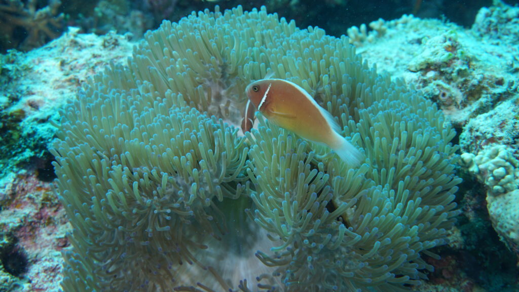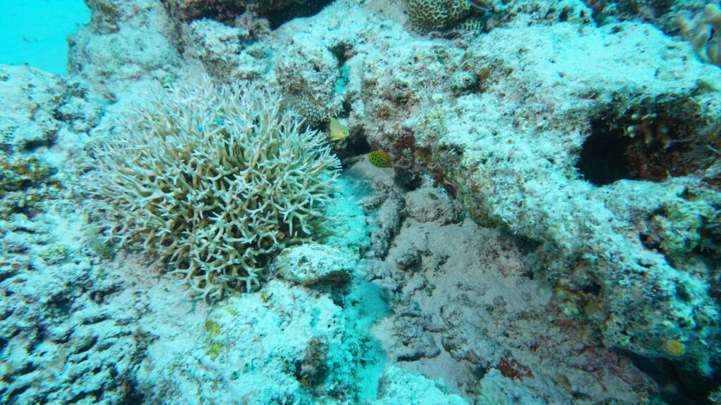 でかいウツボに再会。カクレクマノミ写してたら足元にいたとは。噛まれなくて良かった。