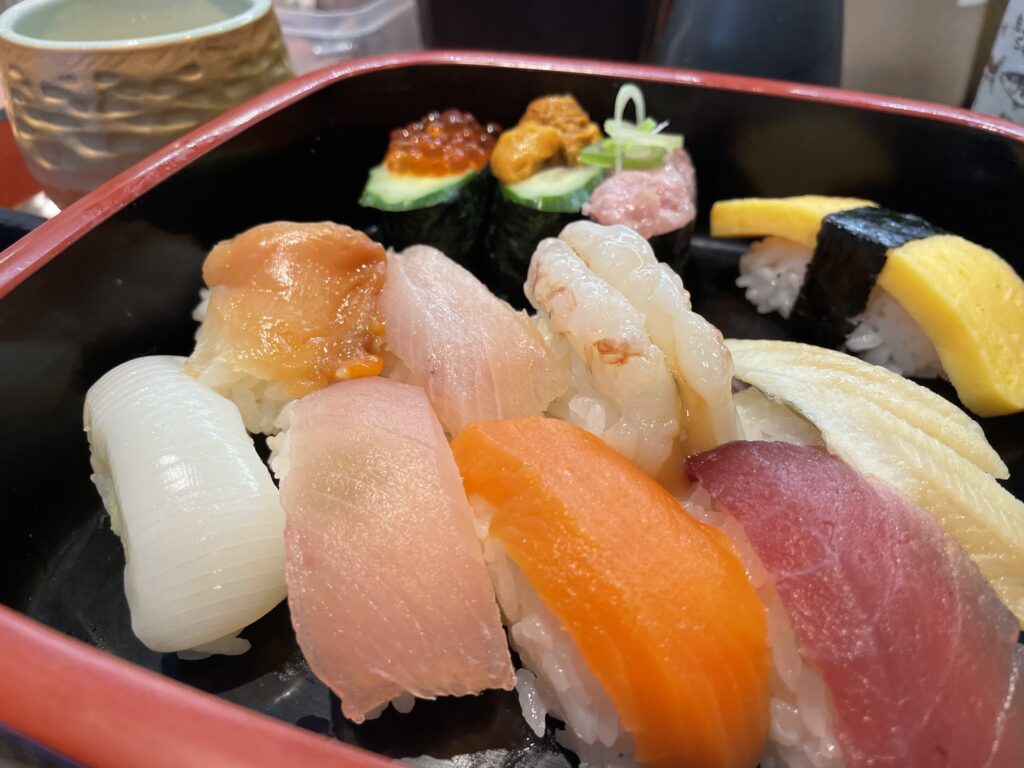この後、「たんや善治郎」の直販店に向かう。その前に昼ごはんです。毎日飽食してるんで、ここはぐっと我慢して、地元の回転寿司屋さん。