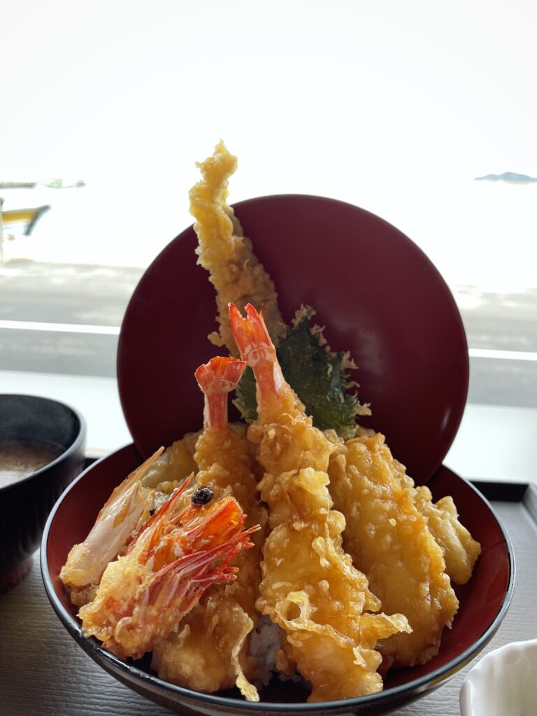「天然海老と太刀魚の天丼」と「浜のうたセット」